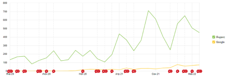 - При тех же вложениях в SEO на выходе - до 600 заявок, которые статистически еще и выше по КАЧЕСТВУ